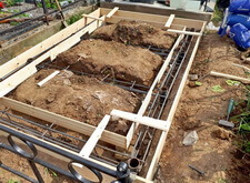 Подготавливаем территорию вокруг места захоронения к покрытию брусчаткой: ввариваем металлическую полосу и укрываем землю геотекстилем.