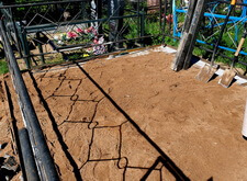 В первую очередь мы очистили территорию участка от сорной травы и прочего мусора. Обойтись совсем без демонтажа не получилось, однако мы сохранили нетронутым ограждение участка. Для создания чёткого периметра будущей могилы, мы подготовились к заливке опалубки.