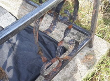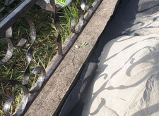 Зачищаем ограждение, готовя его к покраске, параллельно с этим укрываем территорию участка геотекстилем.