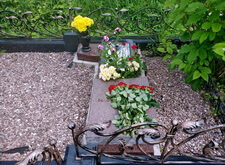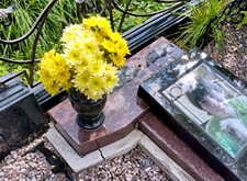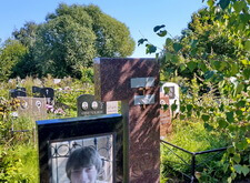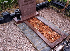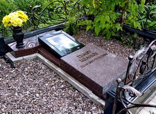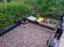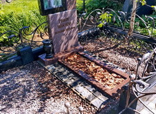 Так выглядит окончательный вариант места захоронения. В правую верхнюю часть надгробья мы установили заранее изготовленный элемент, на